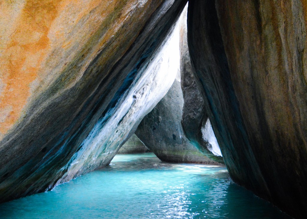 A beach area with a unique landscape, the Baths is located on the Virgin Gorda islands of the British Virgin Islands. The area features unique geological formations and is one of the biggest tourist destinations in the region. The landforms of the area is a result of past volcanic activity and weathering. Here, granite boulders remain strewn along the land that is the result of weathering activities active for geologic ages in the area. The beach area is riddled with tidal pools, archers, scenic grottoes, tunnels, and more interesting landforms. The area is designated as a national park due to the extreme geologic significance of the area. Swimming and snorkeling are popular activities here.