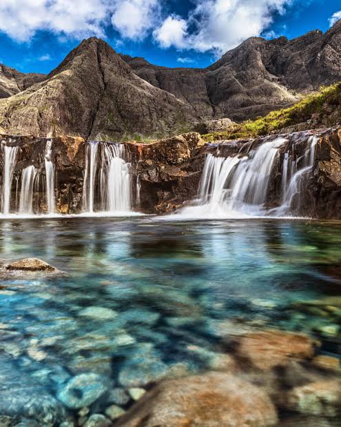 At foot of the Black Cuillins near Glenbrittle are the Fairy Pools, beautifully crystal clear blue pools on the River Brittle. These famous pools entice visitors from all over the world, as they make some great ‘Wild Swimming’ for those brave enough to enter the cold water. For the less adventurous these magical Fairy Pools make some fantastic photos.